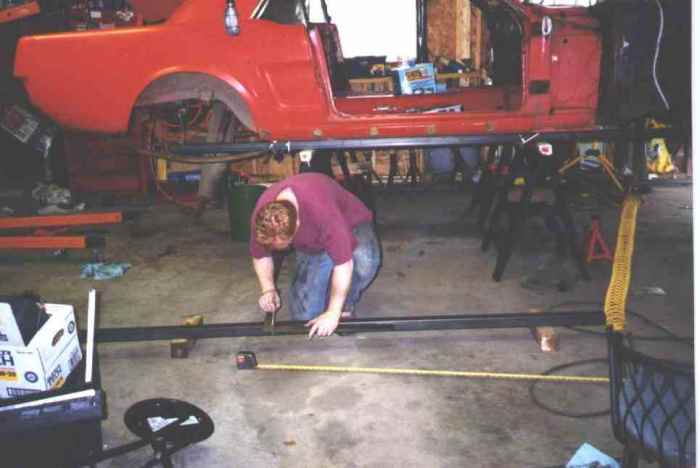 Lifting the rear up and positioning the sawhorses.