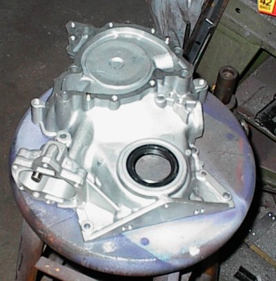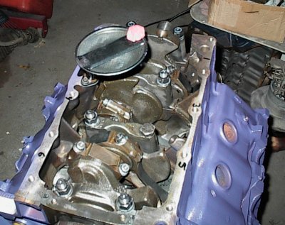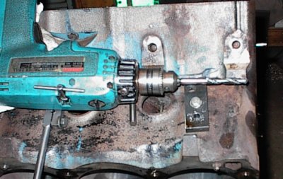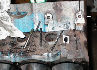 Tapping the oil galleries at the front of the block. The stock Buick has
