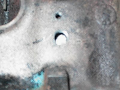 Jumping ahead a bit, the bushing and plug have been welded, the welds dressed