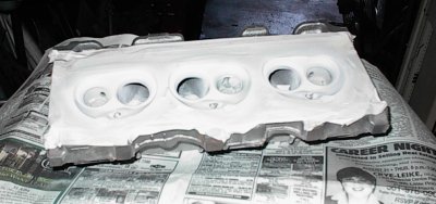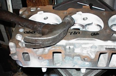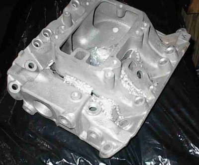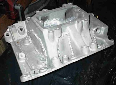 Here, I've welded the intake faces there the plugs were driven in, slopped