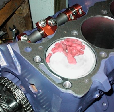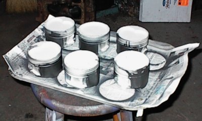 When the pistons came in, the first thing I noticed was that the pistons had big round bowls instead of the combustion-chamber-shaped dishes I'd specified. We called up BRC, FAX in hand, and their attitude was basically, "we have your money, you have the pistons, go away." One of the reasons for going to custom pistons was to take advantage of all the extra quench available with the large 4.1 bore. Now we didn't even have as much as a stock 3.8.