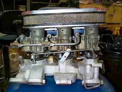 3x2 Stromberg intake from Edelbrock, all dressed up and ready to go.