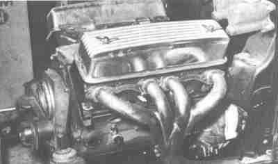 These cast iron ram's-horn exhaust manifolds were from a Ford racing kit.