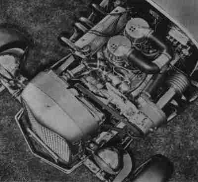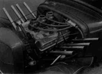 Y-block in a racing car, circa 1959. Multiple carburetion and neat exhaust