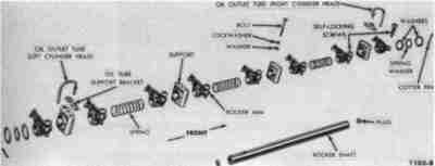 Rocker shaft oiling system. Separate tubes took oil from the heads to the