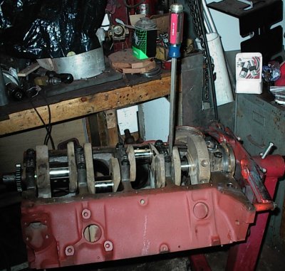 The engine was disassembled, hot tanked, washed, put back on the stand, and