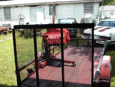 The engine was on Tommy's stand, so he rolled it up on the trailer and tied
