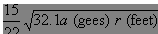 which is the solution of a = v2 / r for v, the velocity. The conversion factor 15/22 converts v from feet per second to miles per hour, and 32.1 converts a from gees to feet per second squared. We covered these conversion factors in part 3 of this series.
