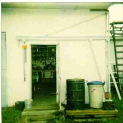 The trolley was $50 from Harbor Freight. I had to take it apart and narrow the spreader tubes several inches, and then I made brass bushings so the wheels would turn easier. The chain hoist was another $50 Harbor Freight item.