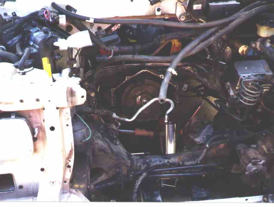 engine using a floor jack underneath. The V8 slid in easier than the V6 came