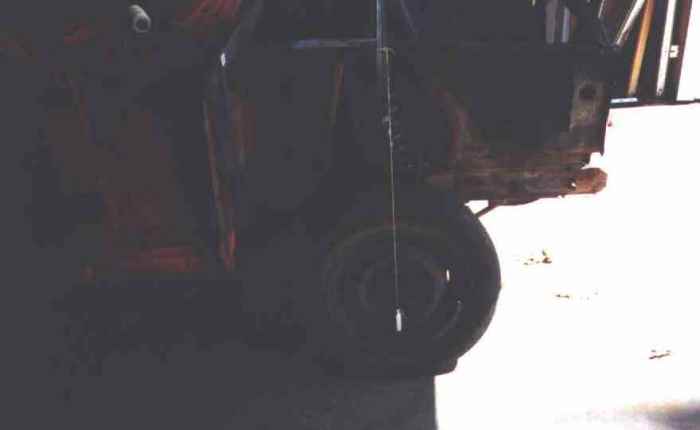 Bar across snout with plumb bob so we can accurately get front wheel