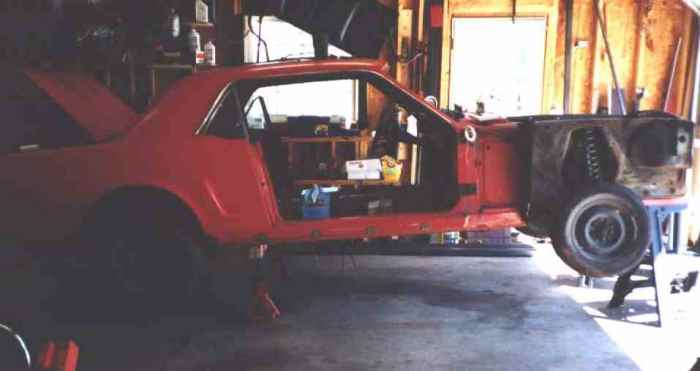 The trunk is heavy enough to tilt the snoutless Mustang shell right off the
