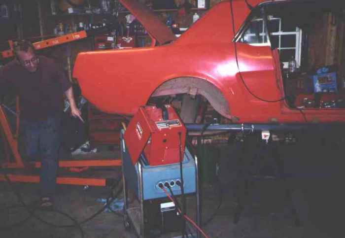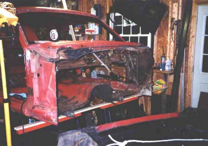 Lifting the rear up and positioning the sawhorses.