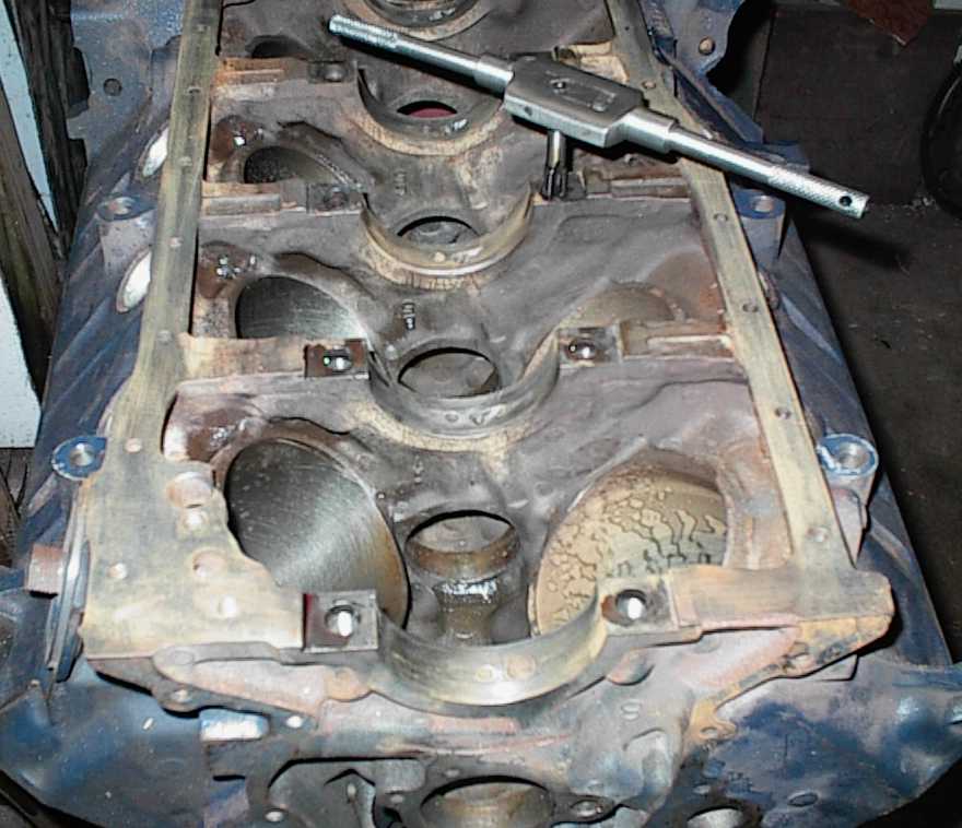 Now we tap the holes so the head bolts will torque down cleanly...