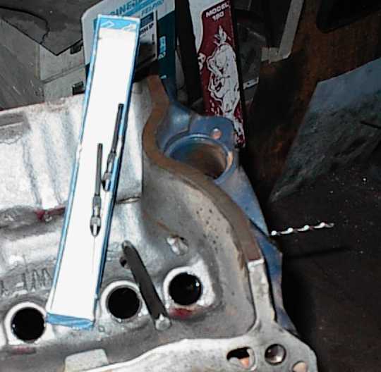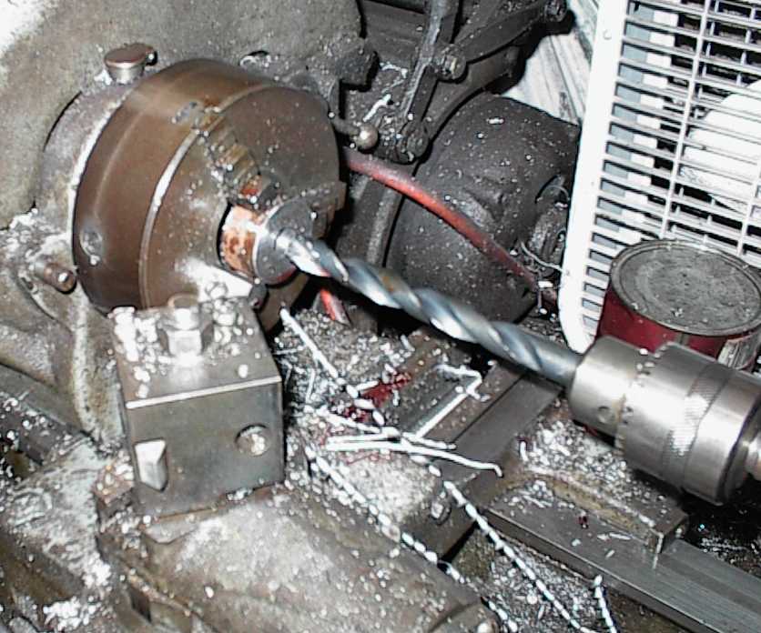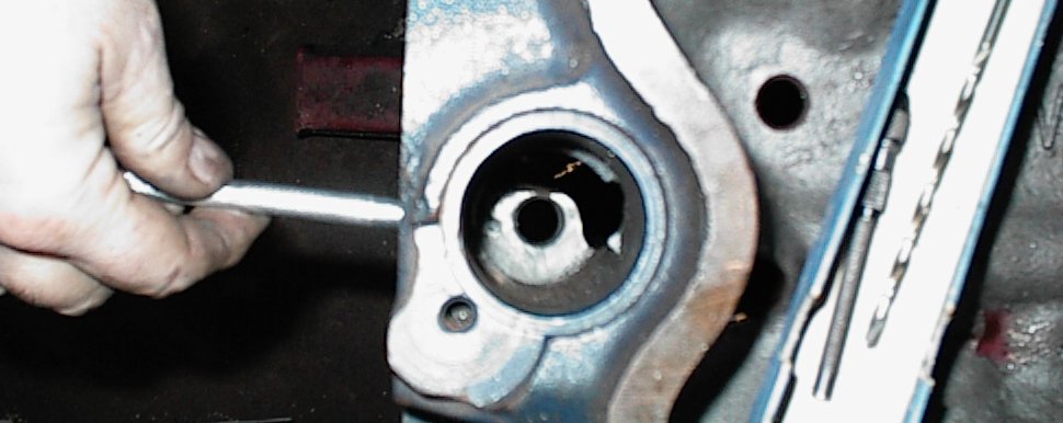 Doing the "oil mod" to pressure-feed the distributor gear. .125" hole most of