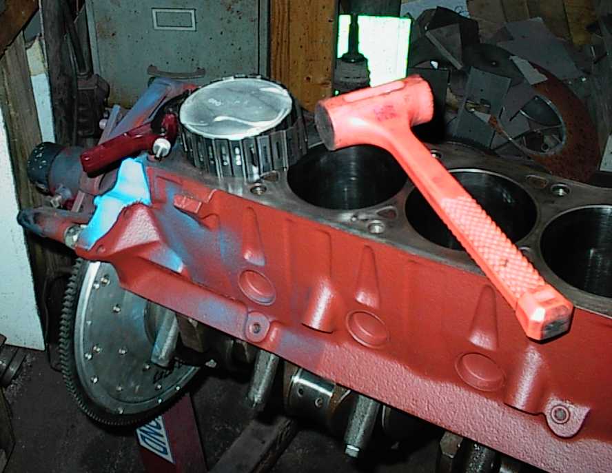 The old whacko-smacko to install the cam bearings. The crank has been in and
