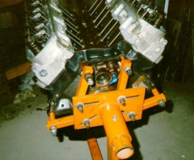 This is an engine I originally built for someone in California. It got shipped there, then got sold to someone in North Carolina, then to Steve Grossen in Virginia. It was begun in 1996, and Steve took delivery of it in 2001. It had come back through the shop, re-done with different piston notches and some other changes, and now sits in Steve's basement, never having been fired up during its travels...