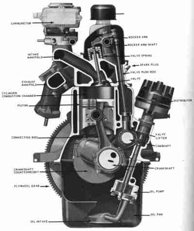 Cutaway of 144 inch Falcon six with solid lifters. Note the comapct
