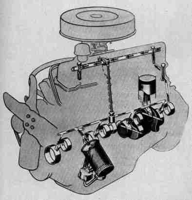 lifters. A vertical passage to the rocker shaft, with timed oil ports on the