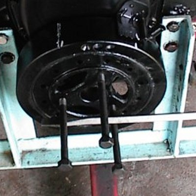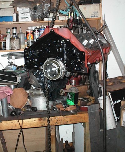 Now I take it loose from the stand, drive in the rear freeze plugs, install