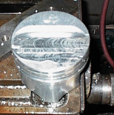 The mill cut is correctly aligned with the axis of the piston; the top of the