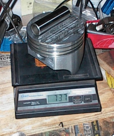 737 grams is still right about what an ordinary 350 flat top piston weighs.