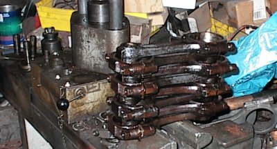 Grinding the shoulders of the connecting rods for cam clearance. You only