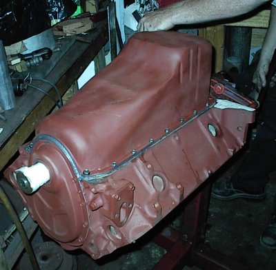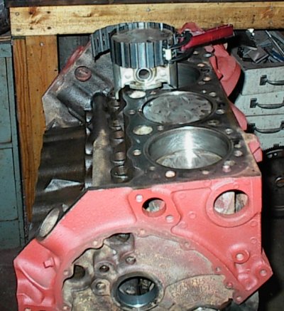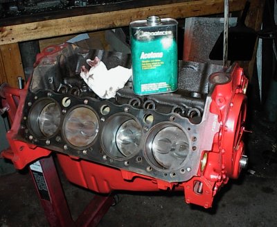 The engine was disassembled, hot tanked, washed, put back on the stand, and