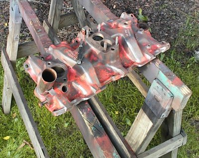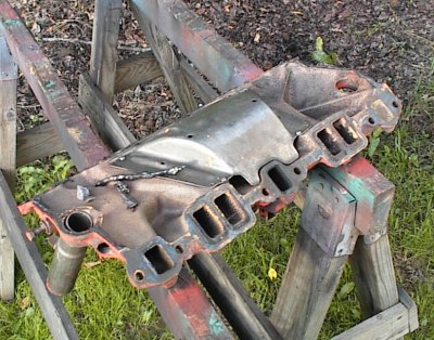 Relatively clean manifold, some gasket material still stuck to it. Normally