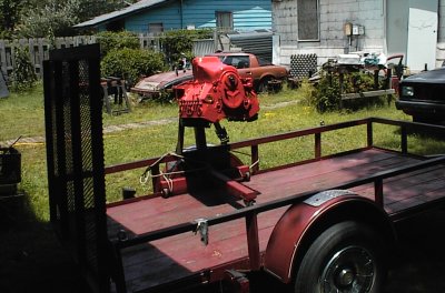 The engine was on Tommy's stand, so he rolled it up on the trailer and tied