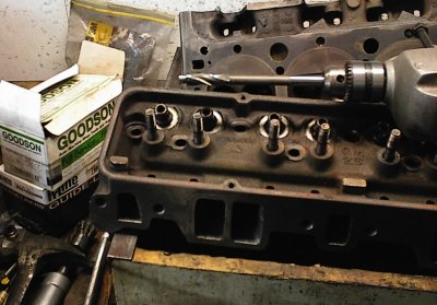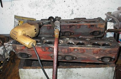 Here, I've already reamed the heads for thinwall guide liners, hammered the