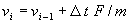 | a = F / m | (2) |