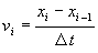 We label another column velocity, and we'll call the velocity in the i-th row vi. For every row except the first, equation (2) becomes: