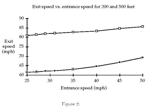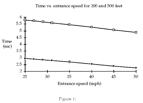Table 1: Exit speeds and times for several entrance speeds