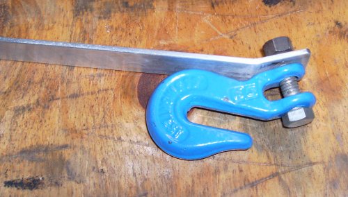 Piece of aluminum strap with a hook. The hook goes on the winch cable.