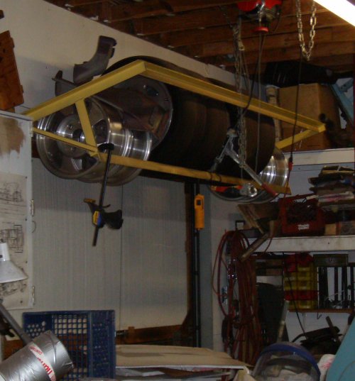 fangles. The yellow angle-iron frame is for holding tires for the race car.