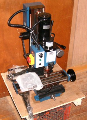 In May of 2008 I bought a Seig X2 "mini-mill" from Toolsnow.com in Missouri. The X2 is a small desktop manual milling machine. They're quite popular for conversion to desktop CNC. I bought the CNCFusion XYZ ballscrew kit and the Xylotex 425 oz-in prewired control box and steppers, but I went quite a bit farther, with a power drawbar, limit switches, head counterweight, and I'm working on an automatic tool changer.