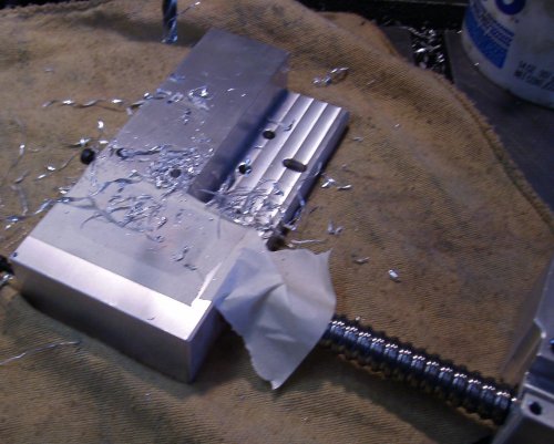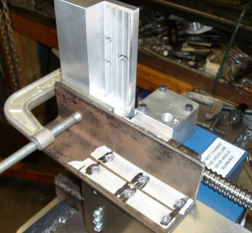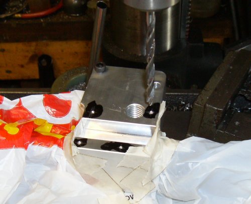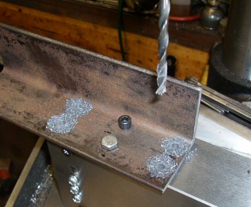 tapped 1/4-20, and now I've bolted the bracket down and I've drilled the other