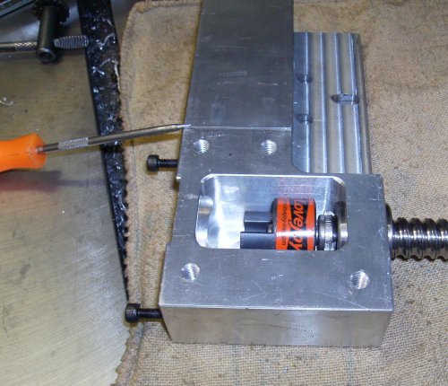The ballscrew has the motor bracket pulled down snug against the dovetail on