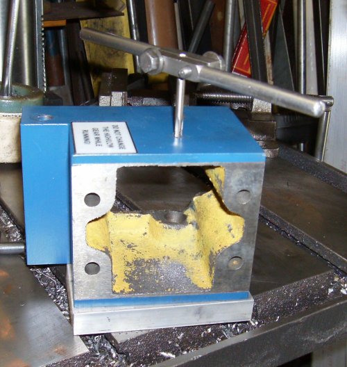 Once I had one tapped hole to mount the block, marked off and punched for
