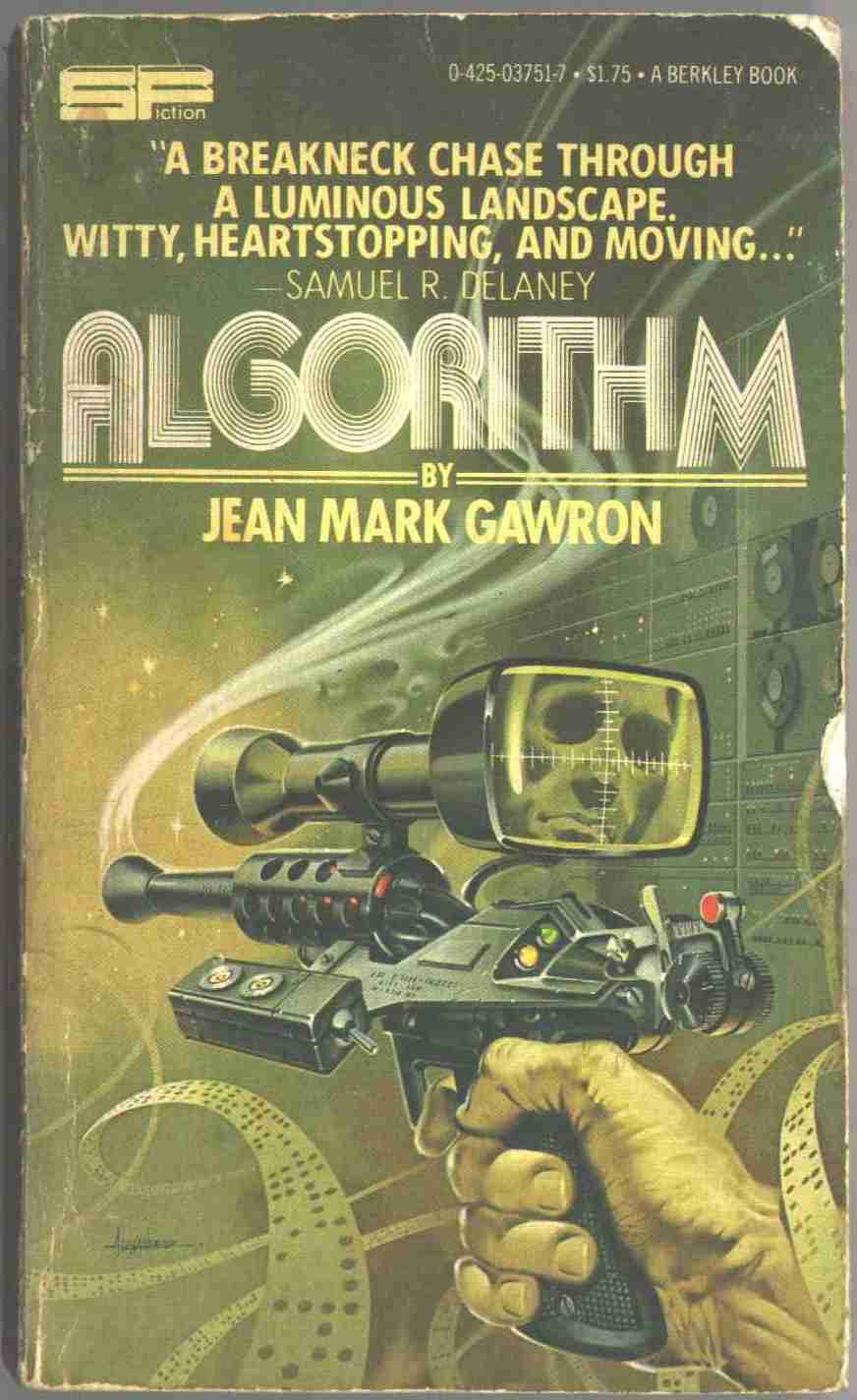 Dig that wild pistol, eh? Streamers of punched tape tell us this is a book of the future! 1980s.